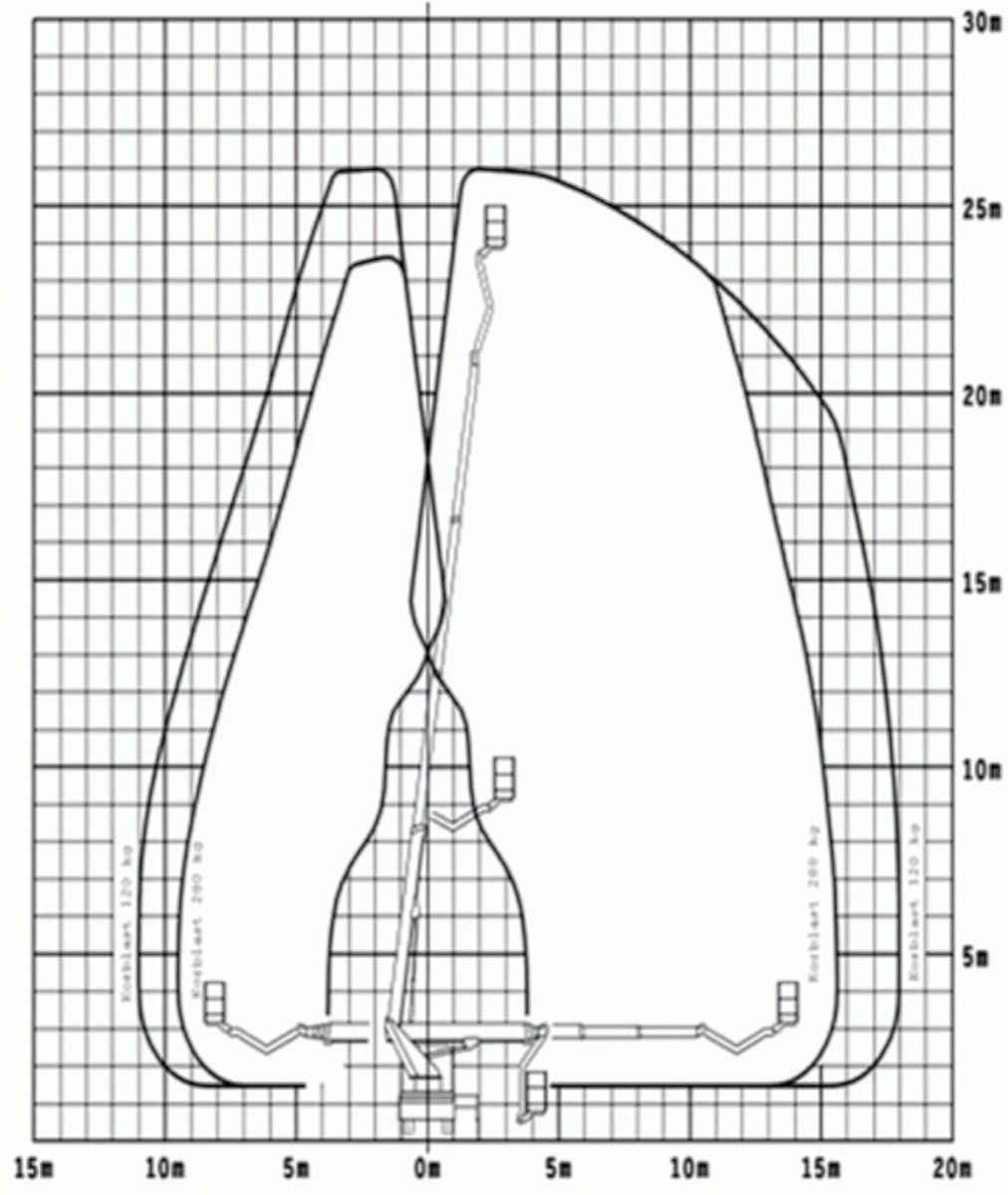 Seitliche Reichweite 7,50 m (200 kg) - 10,20 m (80 kg)