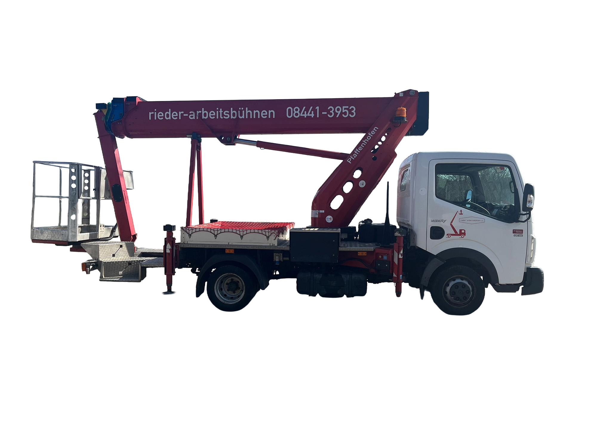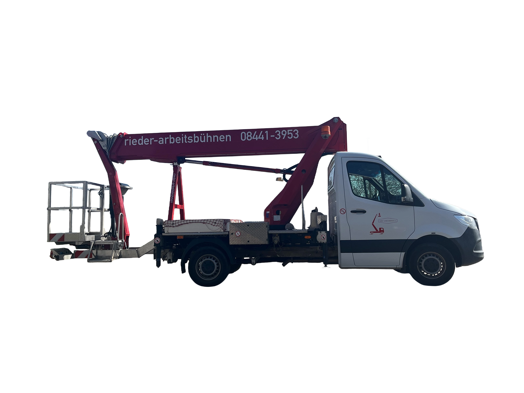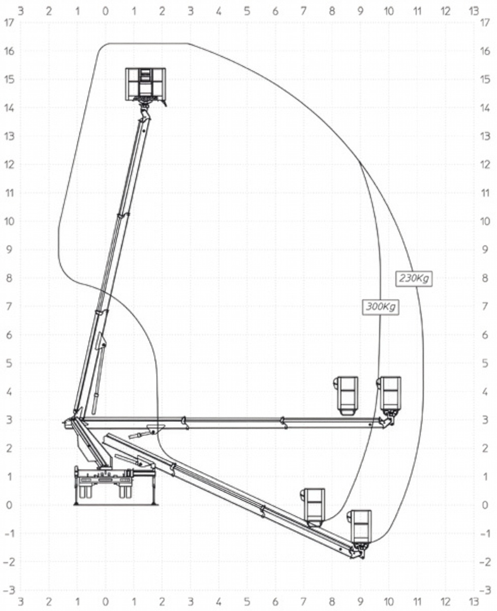 Seitliche Reichweite 13,50 m - 15,50 m (übers Heck bei 100 kg im Korb)