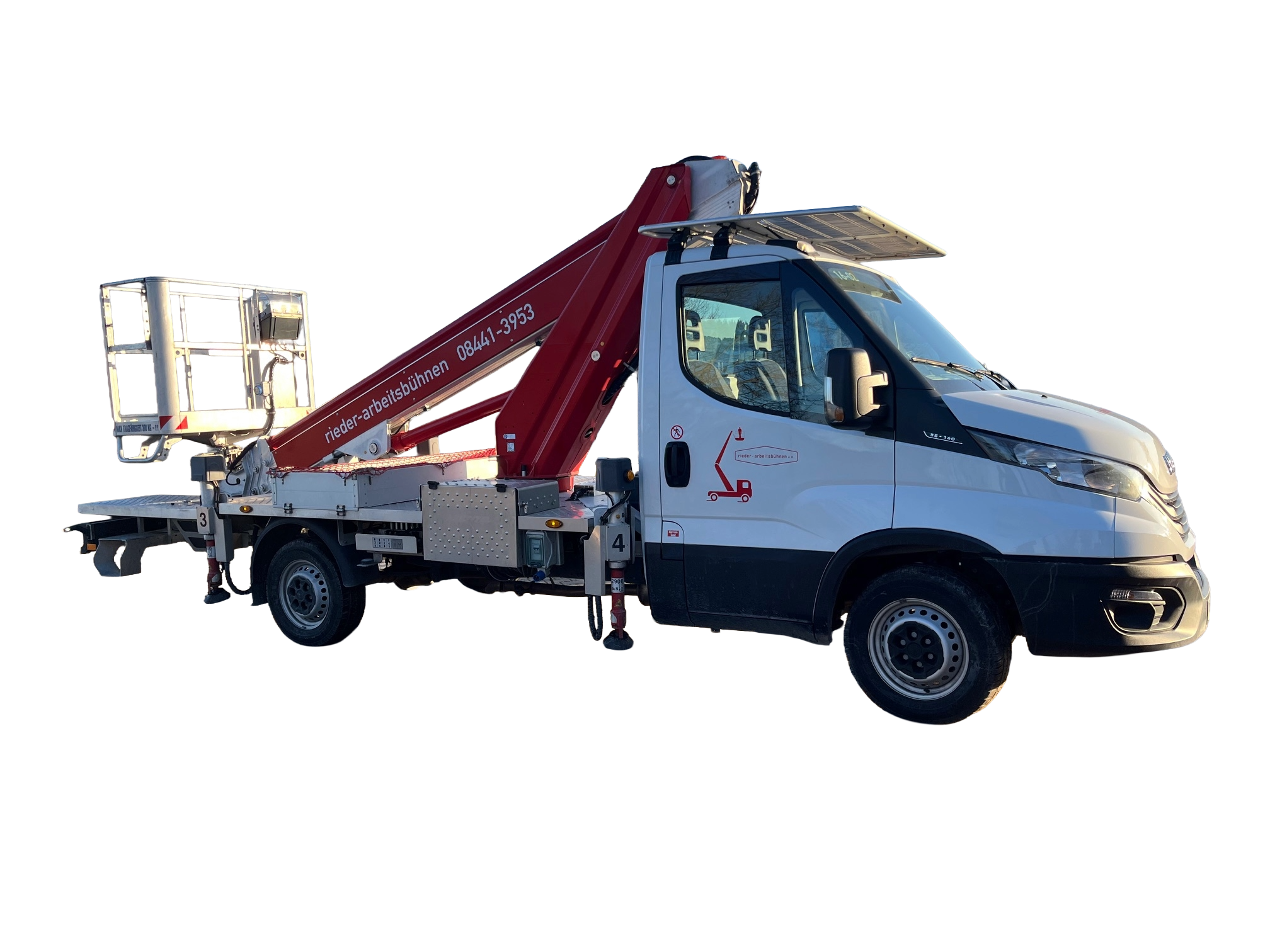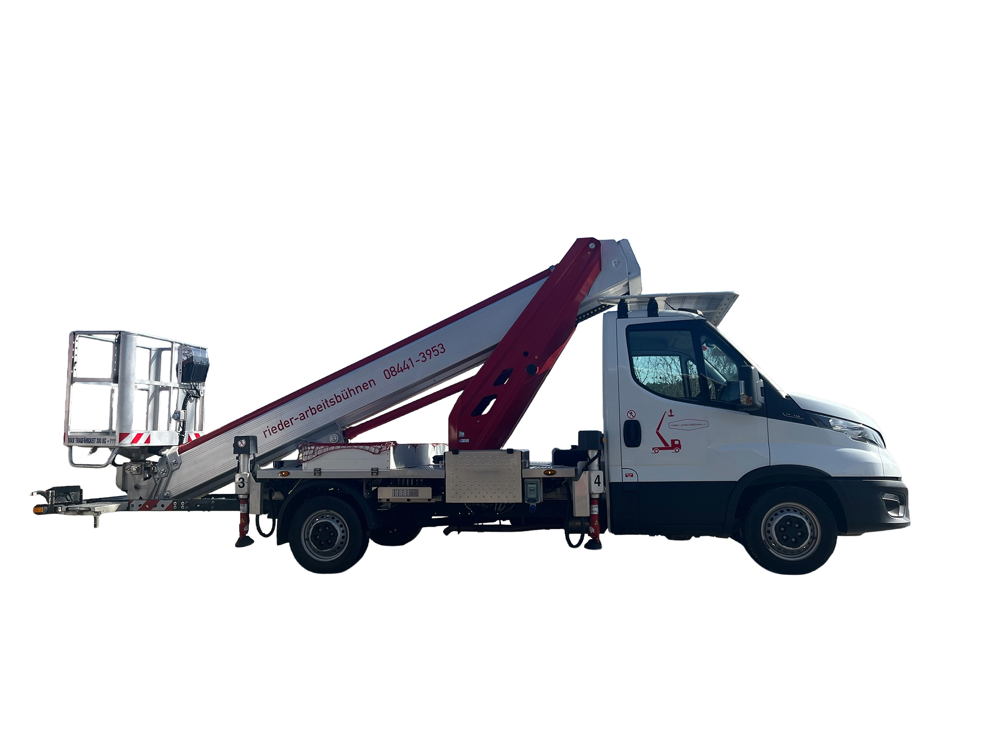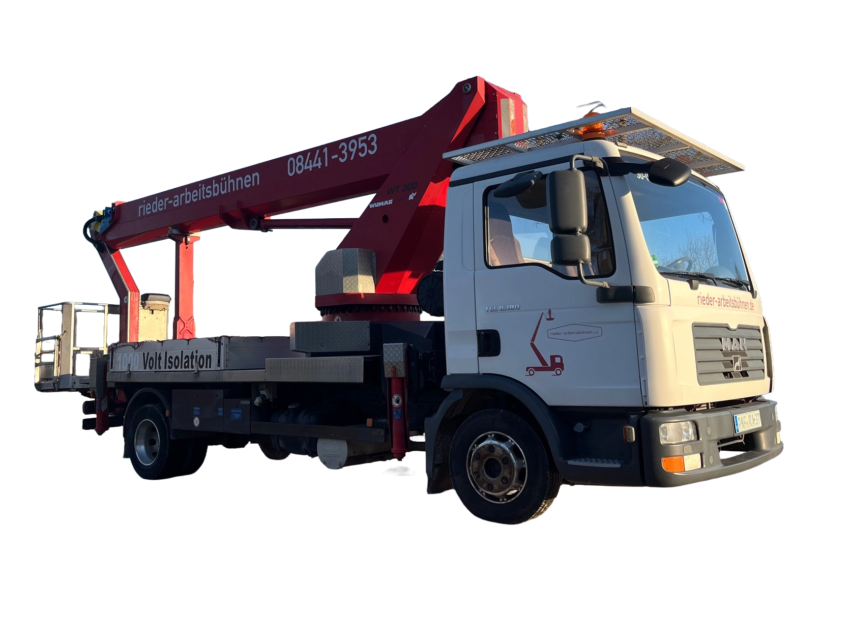 Seitliche Reichweite 13,50 m - 15,50 m (übers Heck bei 100 kg im Korb)